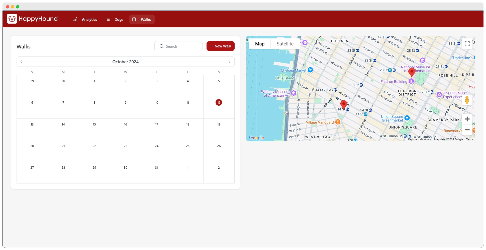 Manage your dog walking business with ease, featuring profiles for clients and their pets and walk tracking and scheduling calendar.Demo